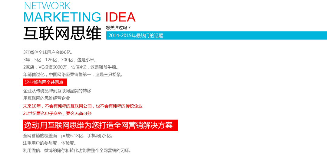 二维码、微博、微信、手机搜索、移动广告等多种收费和免费入口,增大网站访问量,消息推送、微支付等行政完整营销链条